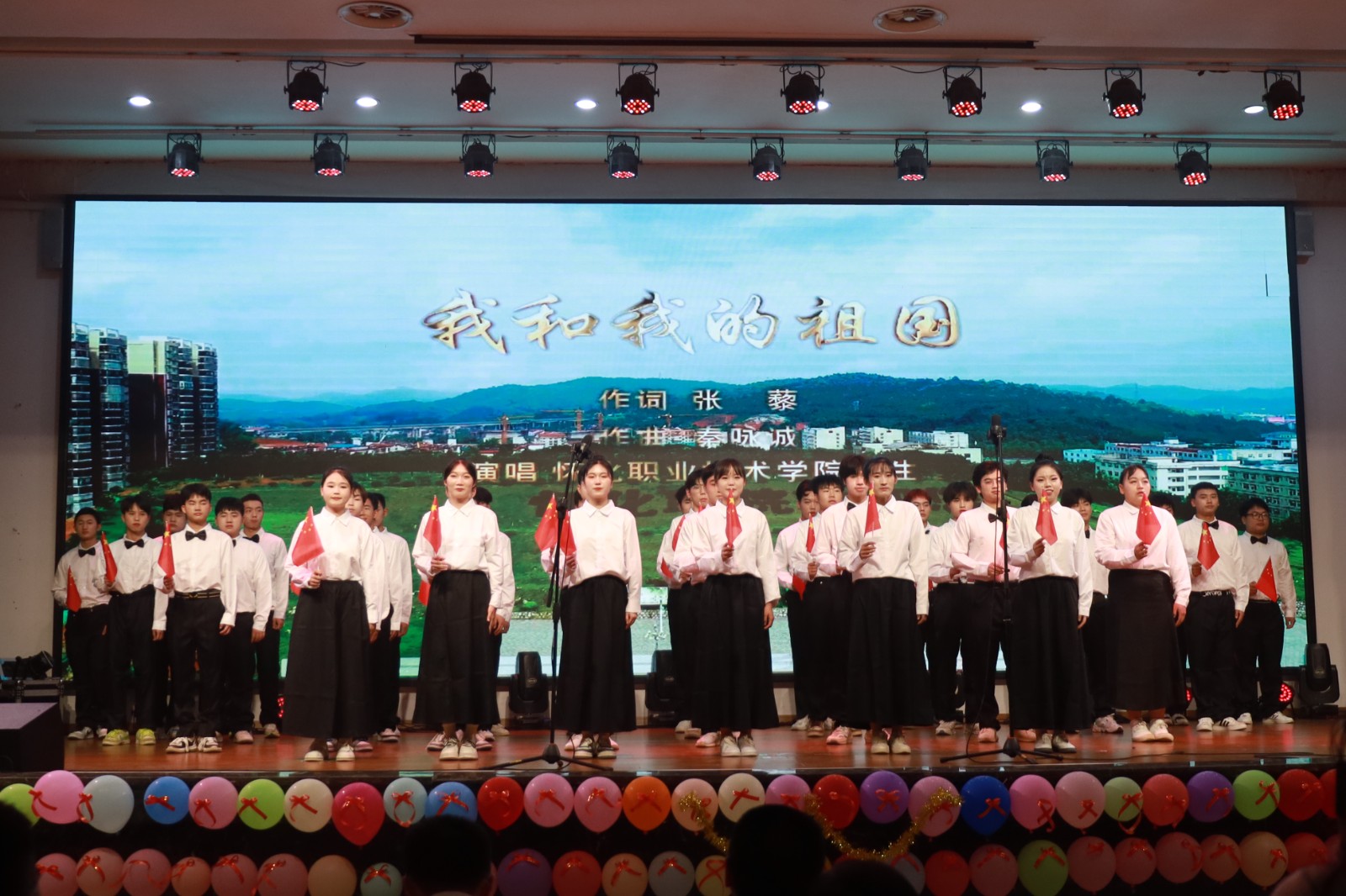 优美动人的开场舞《有我》拉开了本次文艺汇演的序幕,展示出中华儿女砥砺前行、不惧风浪的万丈豪情;《战火中的大学》《呼唤》《你的答案》《精武少年》激发了全体师生永远跟党走、奋进新征程的豪情与壮志;《稻子熟了,妈妈我想你了》深情缅怀和致敬我校名誉院长袁隆平院士;民族舞《江红锅庄》展示了中华民族一家亲,同心共筑中国梦的其乐融融画面;《用青春描绘梦想》《闪耀吧,青春的火光》……精彩的节目表演引得现场掌声不断。清廉文化、党史校史知识抢答环节,现场观众热情参与。最后,现场全体观众大合唱《我和我的祖国》。