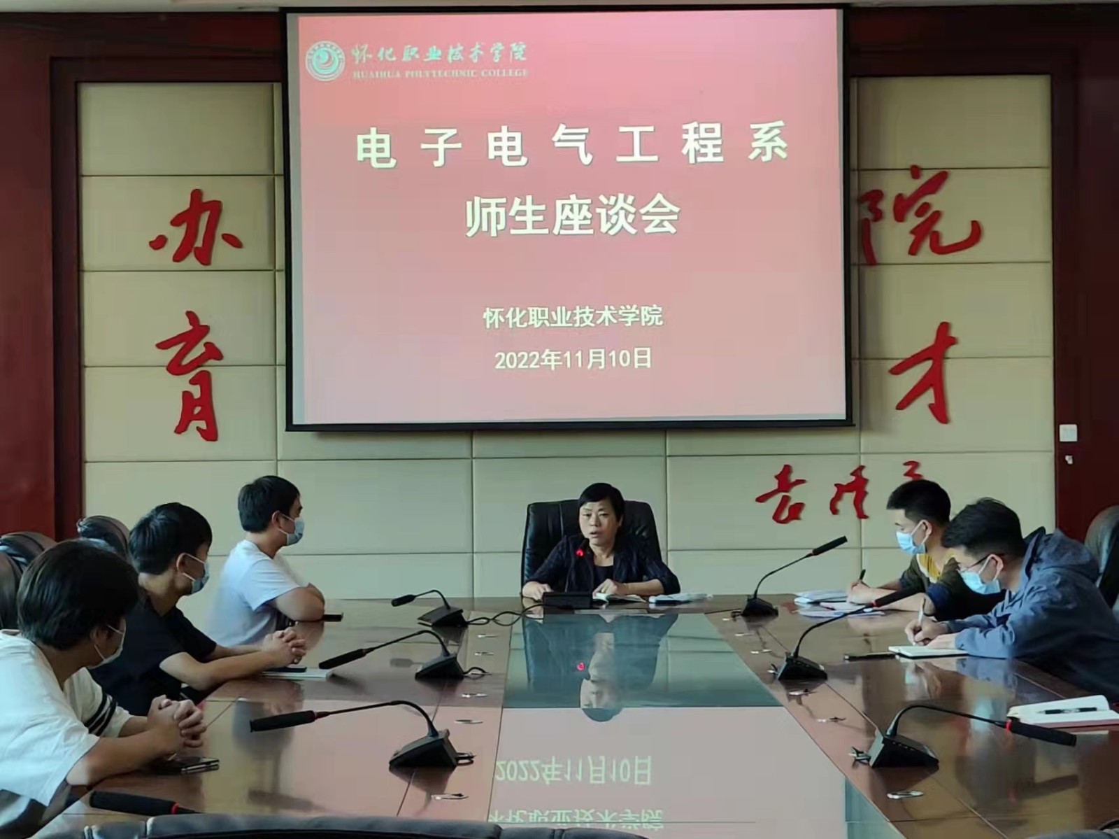 为进一步了解学生生活、学习状况,关心学生的思想动态、倾听学生的心声,2022年11月10日下午4点,下午7点,我系在学院多功能会议厅分批次组织召开两场师生座谈会。
