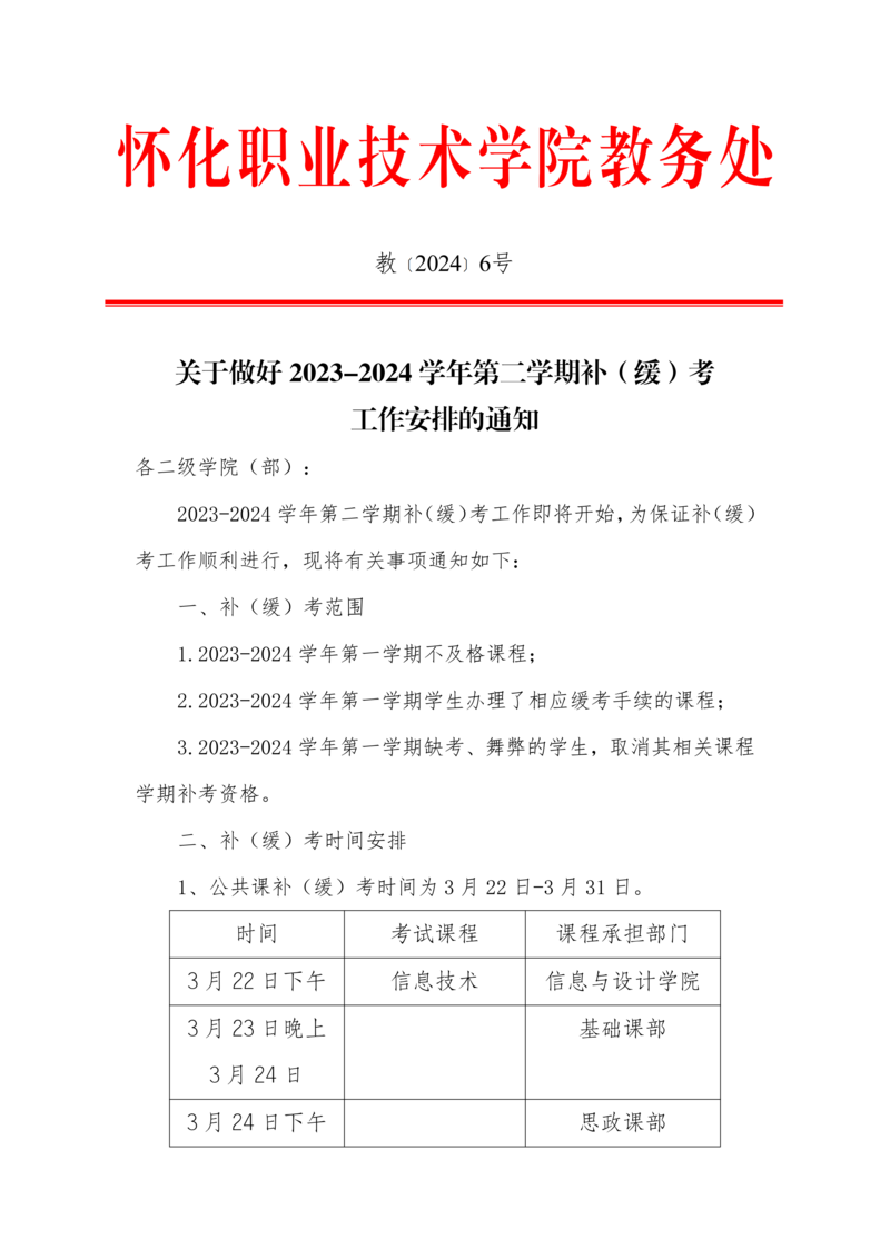 关于2023-2024学年第二学期补缓考工作安排的通知