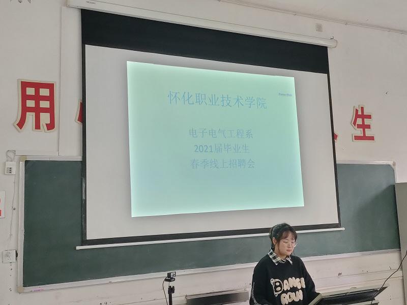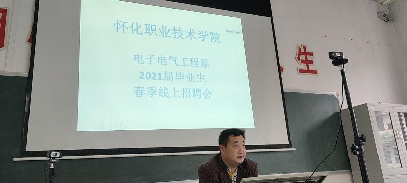 2021年5月21日下午2点,电子电气工程系在实训室312通过钉钉平台举办的2021届毕业生线上专场招聘会开始进行。我院党委委员、副院长廖冬云,电子系党支部书记易小菊,电子系主任唐绪伟在现场指导观看了此次招聘会。