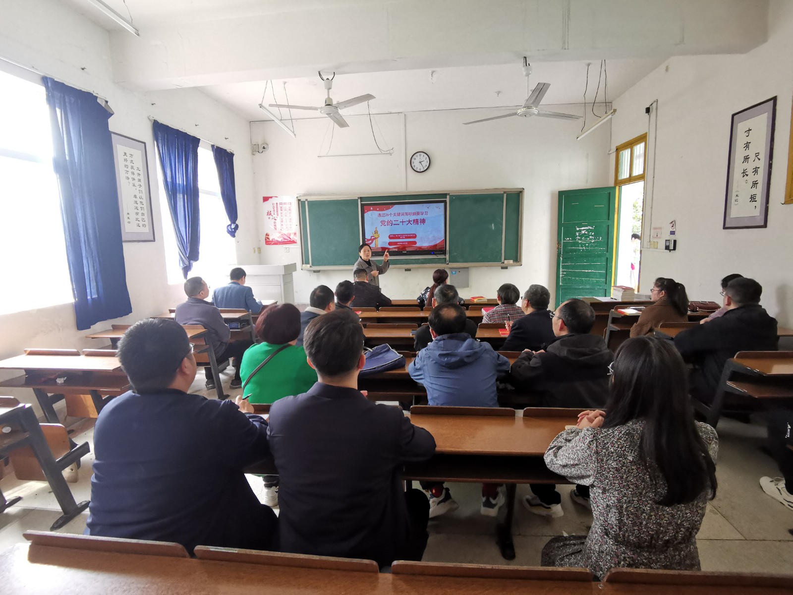 课上,易小菊通过26个关键词简明纲要学习了党的二十大精神。她指出,全体教职工要在深刻领会把握党的二十大精神基础上,抓好学习宣传贯彻,力求学深学透、融会贯通,做到学有所思、学有所悟、学有所践。