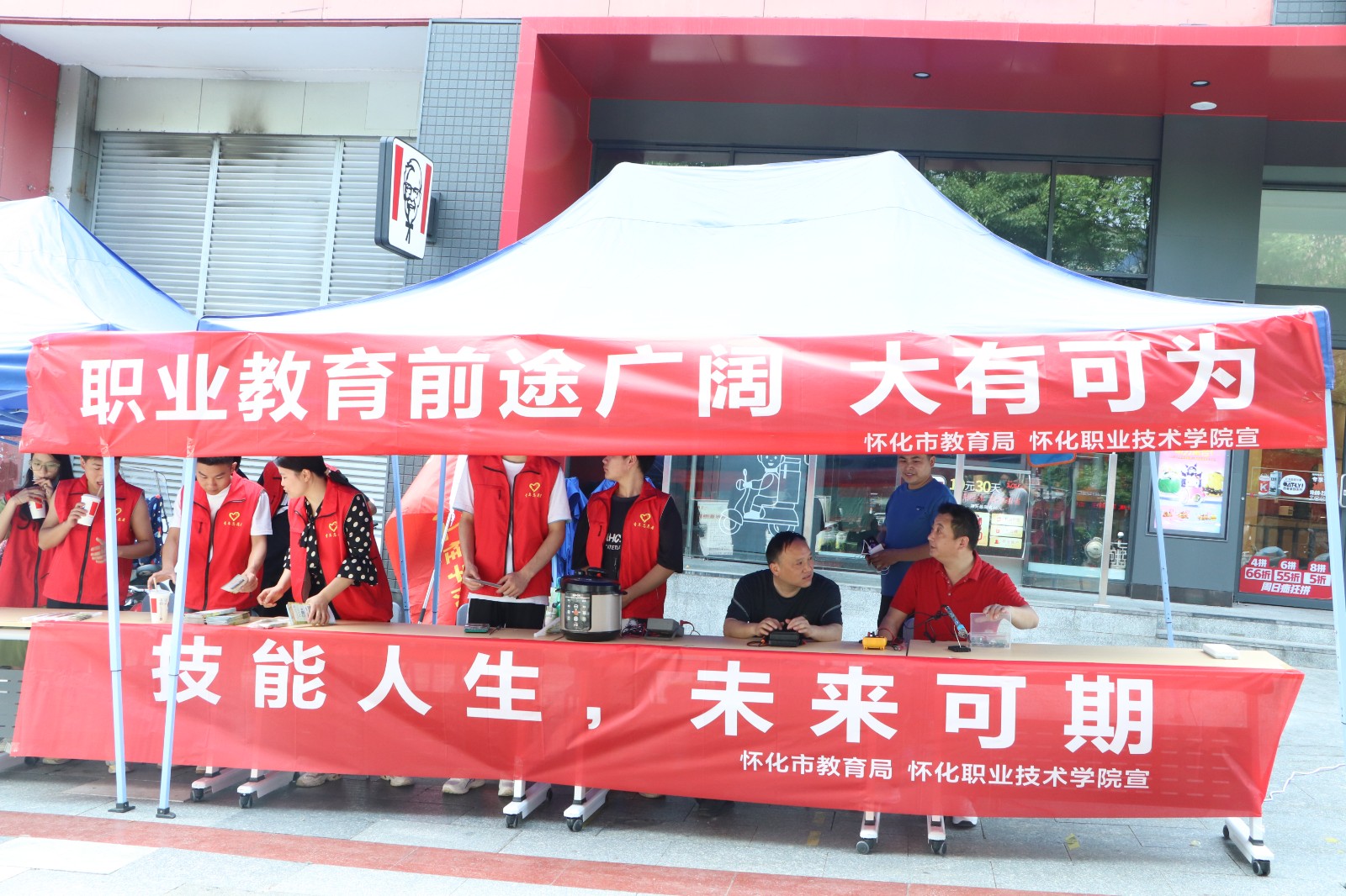 5月21日,在职教周活动期间,我校在怀化市经开区河西街道滨江社区德天广场开展了“技能:让生活更美好”主题宣讲暨家电义务维修活动,为社区群众深入宣传职业教育法,积极展示学校专业特色,办学成果。