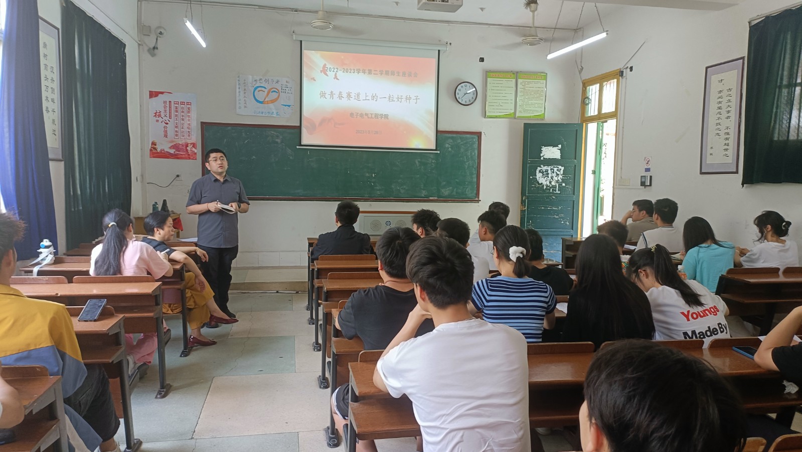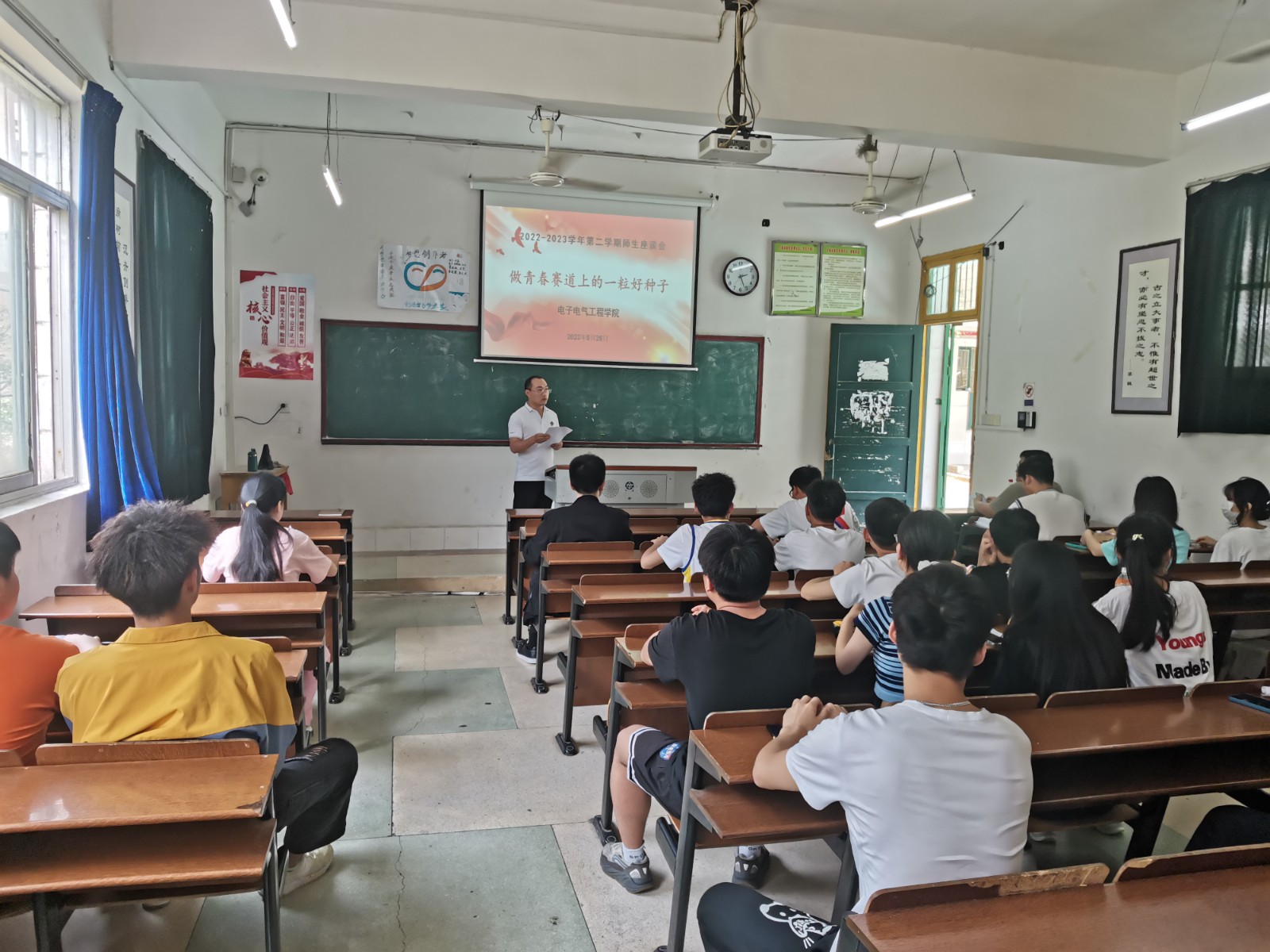 5月26日下午,英国威廉集团学生座谈会在教学楼北103教室顺利召开,本次会议的主题是“做青春赛道上的一粒好种子”。教学副院长王鹏主持会议,支部书记易小菊、教学干事唐东成参会,27个班级学生代表参加。